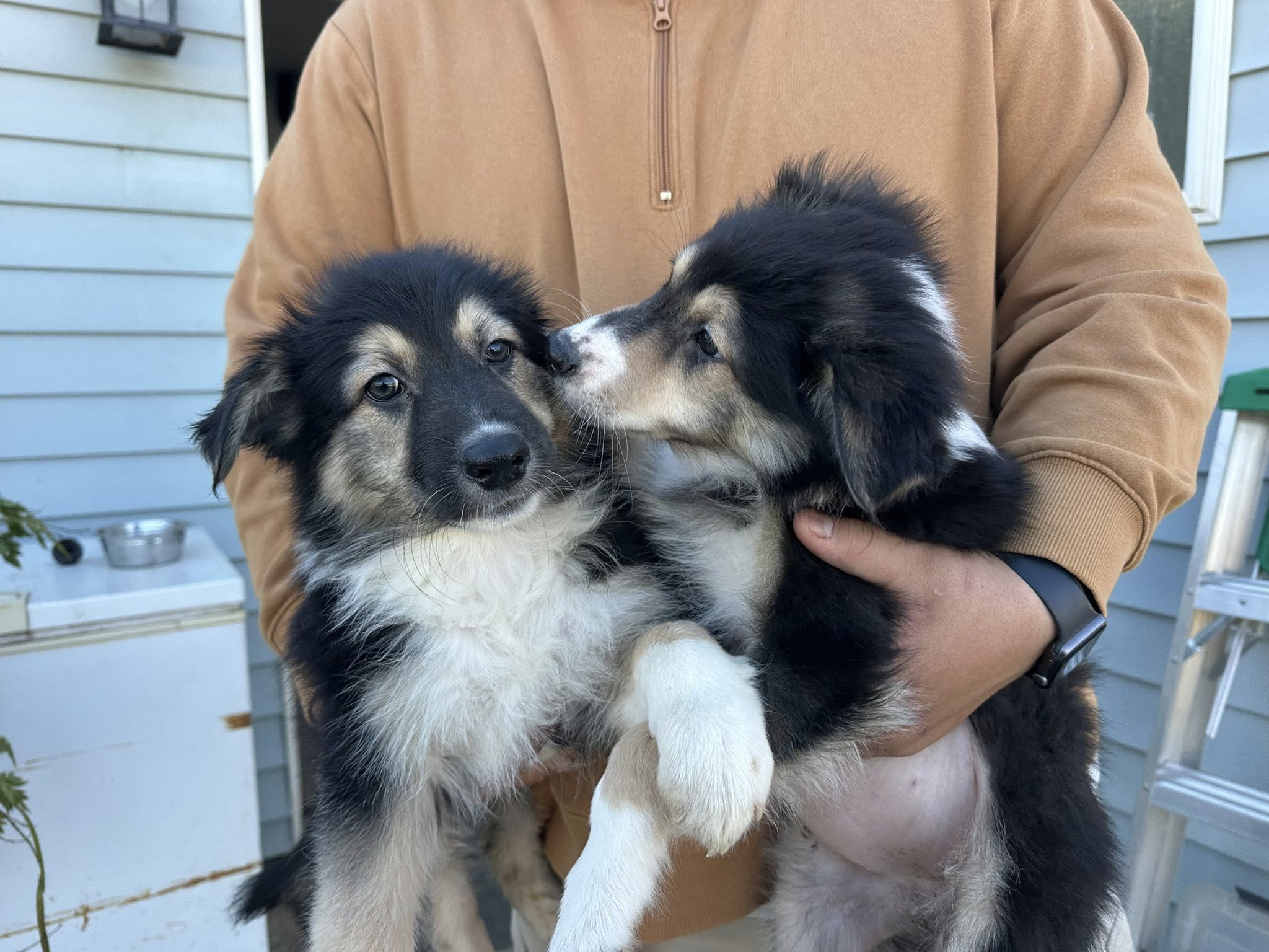 Aussie Shepherd Collie mixed pups available for adoption. Born 11/20/25, 5 girls their adoption fee is $250.00.