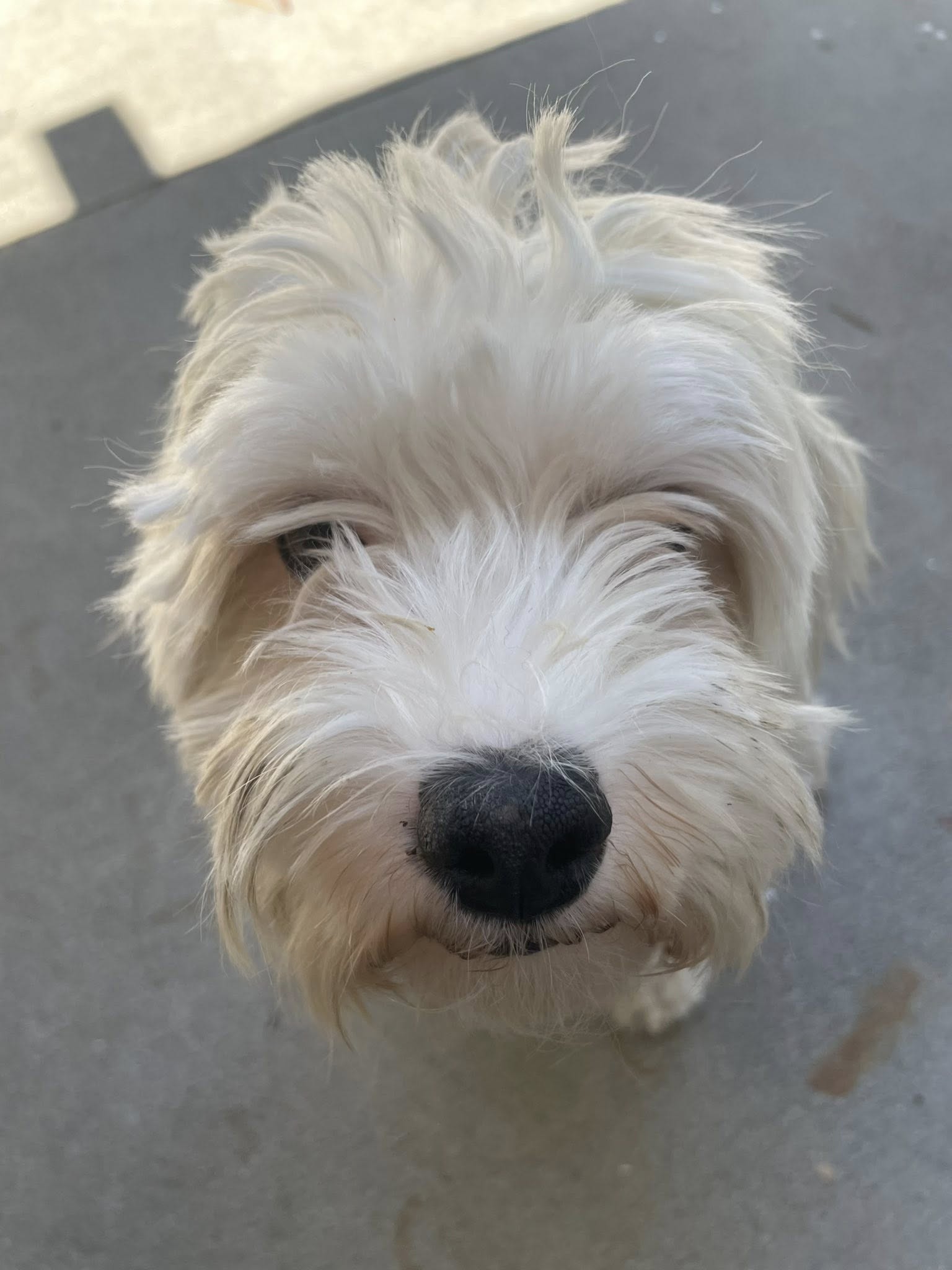 Meet Doody, he’s a 3-year old Maltese Poodle mix. Good with other dogs. LOVES car rides. House broken. Crate trained – though he’s not a fan of being crated a lot. Fine with the cats. He is nervous with strangers, but once properly introduced, he’s good in just 5 minutes. Not best for really young kids running around or having little friends over because he needs that slower introduction. He likes being a lap dog in a calm home and likes playing with other dogs.