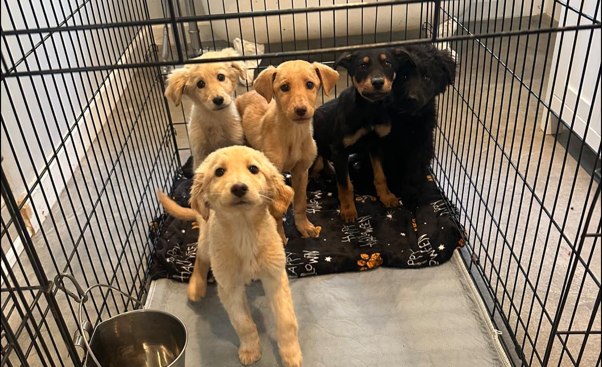 These poor babies are skinny. They were not being fed well at all. But they’ve now had their first round of deworming and vaccines and are on their way to being fattened up little pups. Super sweet temperaments. The parents are sweet too. Parent dogs will stay at their home and be spayed/neutered.